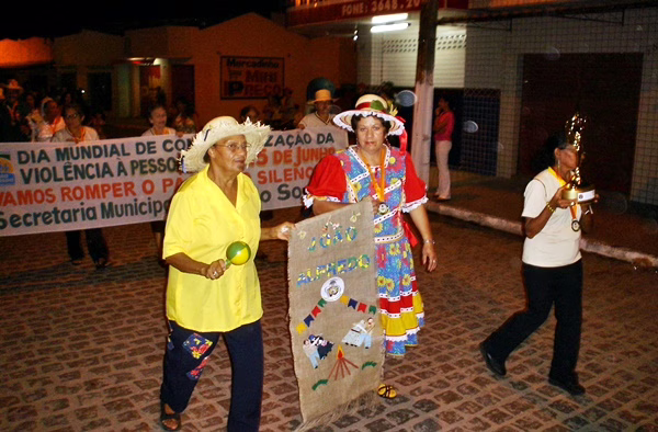 As senhoras Doroteia Maria (+) e Áurea Assis (+) durante caminhada junina realizada em João Alfredo, 16 de junho de 2006.