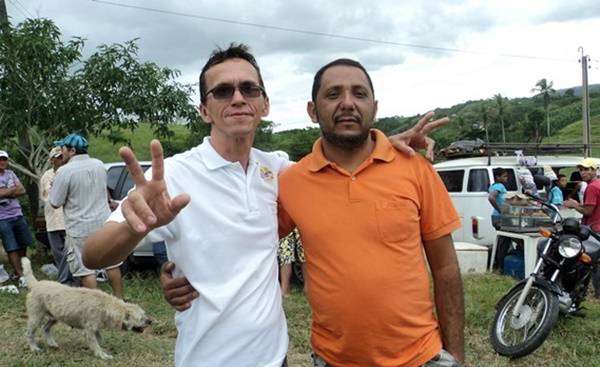 Os amigos Marcelo Rodrigues e Antônio Carlos-“Cau”, durante evento realizado no sítio Jenipapo, em João Alfredo, no dia 19 de agosto de 2012.