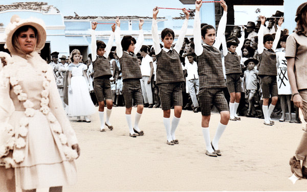 Pelotão dos bastões do Ginásio Nossa Senhora Auxiliadora (CNEC), durante desfile realizado em João Alfredo no dia 10 de outubro de 1965.