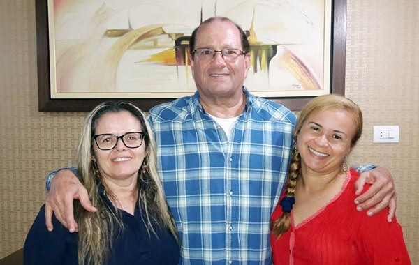 Dimas Santos ladeado pelas irmãs Havaí e Hérica Ferreira, durante confraternização realizada no dia 24 de dezembro de 2017, na residência das anfitriãs em João Alfredo.