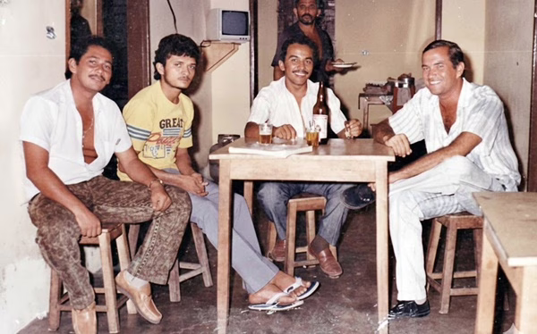 Jurandir, Salatiel, João Aires e Dimas Santos, durante prosa regada a cerveja, numa segunda-feira de 1990, em João Alfredo.